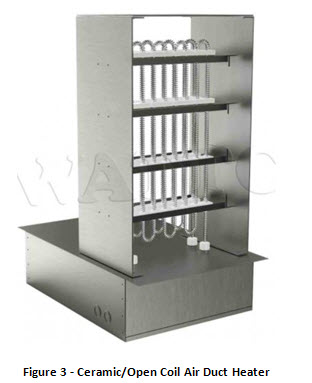 An air duct heater possesses multiple heating elements that are either coils or tubes that are attached to a steel casing, which is mainly used to prevent vibration and to protect the heater. Incoloy® unfinned tubes (Figure 1) are the most common selection due to its simple and energy saver design. Finned tubes (Figure 1) are generally good for additional protection, especially for humid air ducts from electrical shock. Open coil element is an alternative for heating large air surface area and it requires less energy to operate.