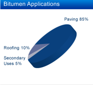 Bitumen’s ability to withstand structural movements and its waterproof capabilities make it an excellent choice of material to be used for roofing. Around 95% of the global bitumen demand is for paving roads and roofing. The remaining 5% comprises of a number of mentioned and more secondary applications.
