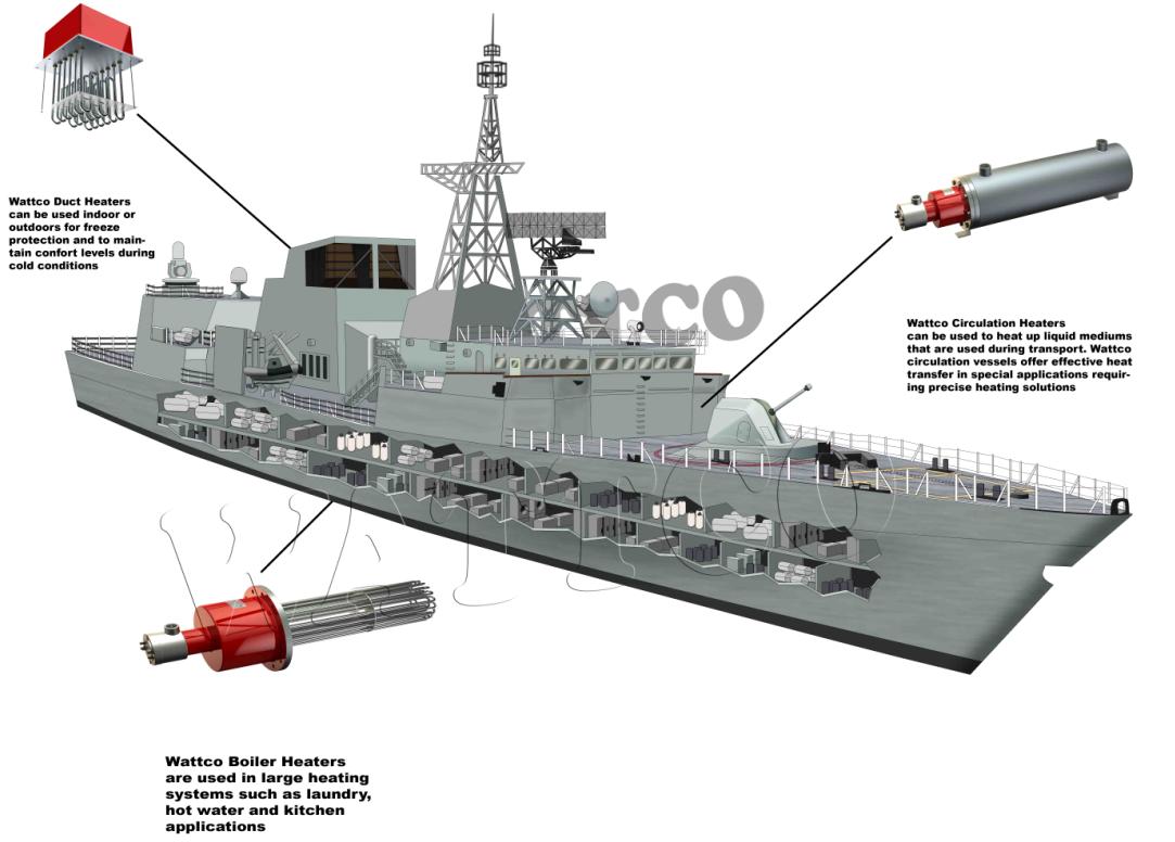 The defense industry uses electric heating equipment for many applications. The majority of heating is potable water for hygiene, cooking, and drinking. But they also play important roles such as fuel preheating and comfort heating.