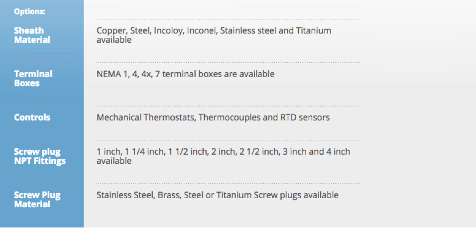 L’une des grandes qualités d’un réchauffeur à usage latéral est qu’il laisse beaucoup d’espace dans le réservoir pour d’autres opérations de traitement du fluide puissent avoir lieu. Étant donné qu’un tel réchauffeur est placé le long d’une paroi, il ne perturbe pas les autres processus. En outre, il peut rapidement être retiré une fois que la solution a atteint la température désirée. La fabrication de l’élément de chauffage est conçue pour assurer sa longévité au top de ses performances. Les éléments peuvent être fabriqués au moyen d’acier, de cuivre, d’un alliage moulé, et même du titane en cas de besoin. Pour une utilisation avec des produits chimiques particulièrement dangereux, Wattco recommande un revêtement en fluoropolymère ou en quartz pour l’élément.