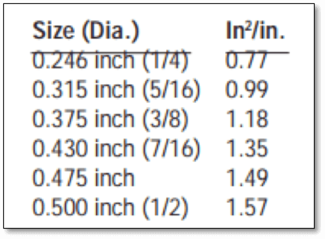 La surface des éléments tubulaires de taille standard est indiquée dans la figure ci-dessous: