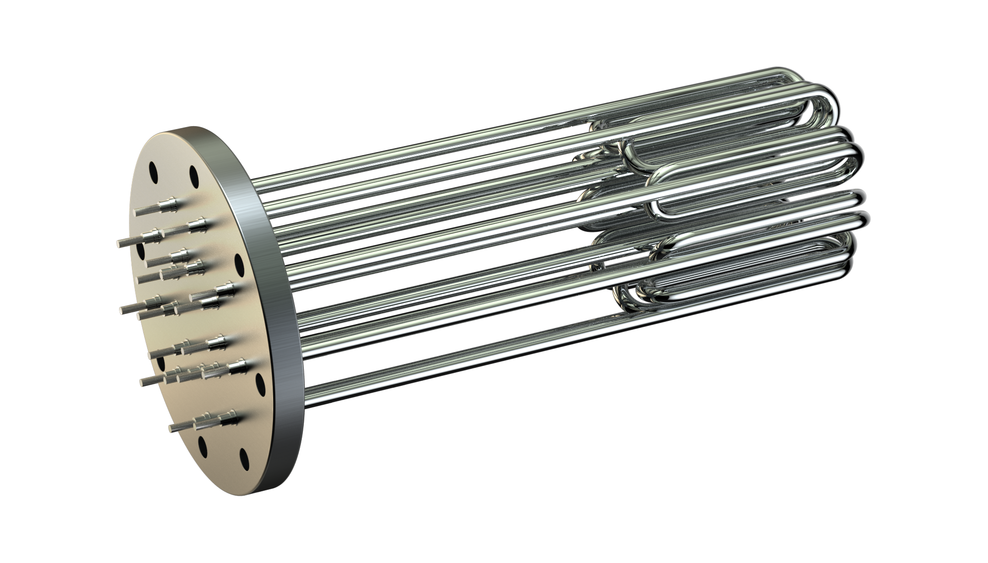 Type tubular elements using Incoloy® sheathed elements that are welded or silver-brazed into a pipe or steel flange.