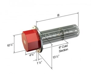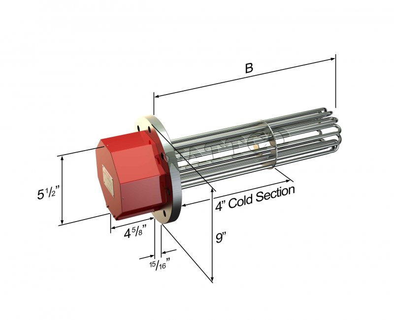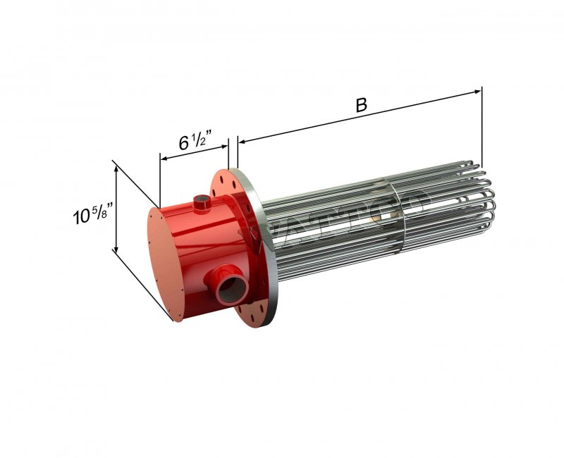 Flanged heaters are commonly used in many chemical, petroleum and water based applications. Consisting normally of an ANSI rated flange with several hairpin elements or bugle tubular elements extending from the face of the flange, this electric heater uses direct heat application to the liquid medium.