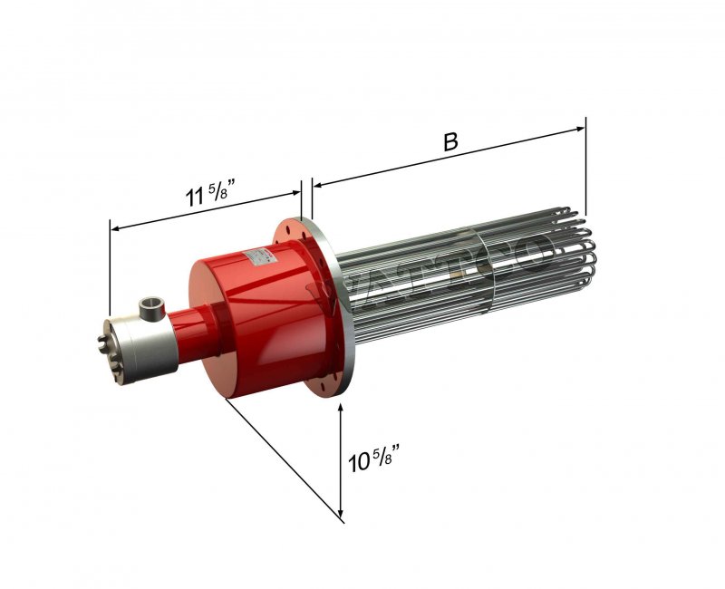 WATTCO™ flange heaters are supplied with unlimited immersed lengths. When the immersed length exceeds 50”, it is recommended to install an internal vessel support. |