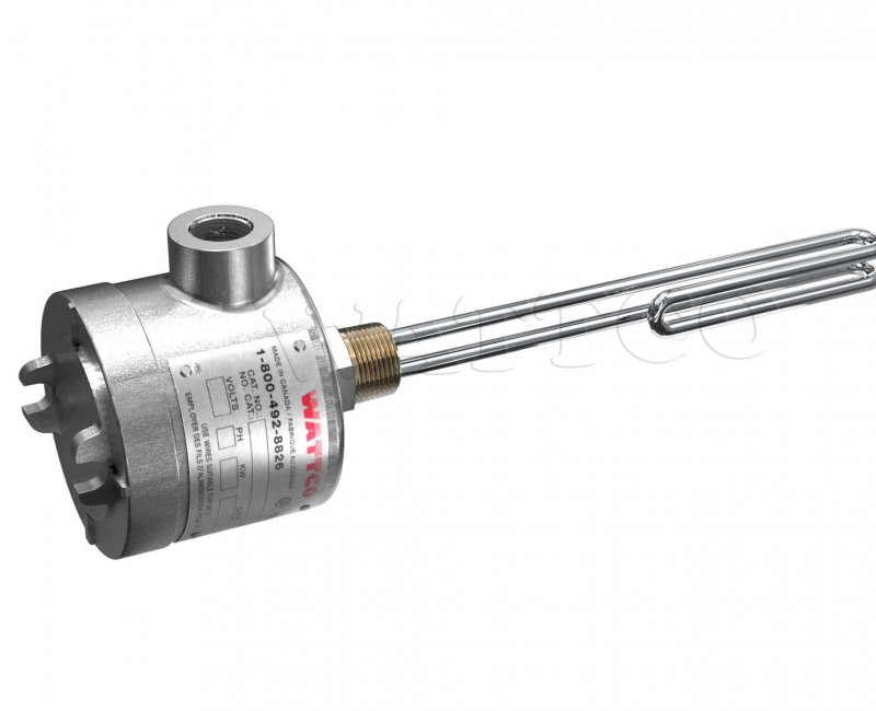 Screw Plug heaters from WATTCO™ consist of hairpin tubular elements that are brazed or welded into a machined pipe thread fitting, (normally an NPT fitting for North American standards) which are then screwed directly through a threaded coupling in the tank wall or vessel, or installed in pipe.