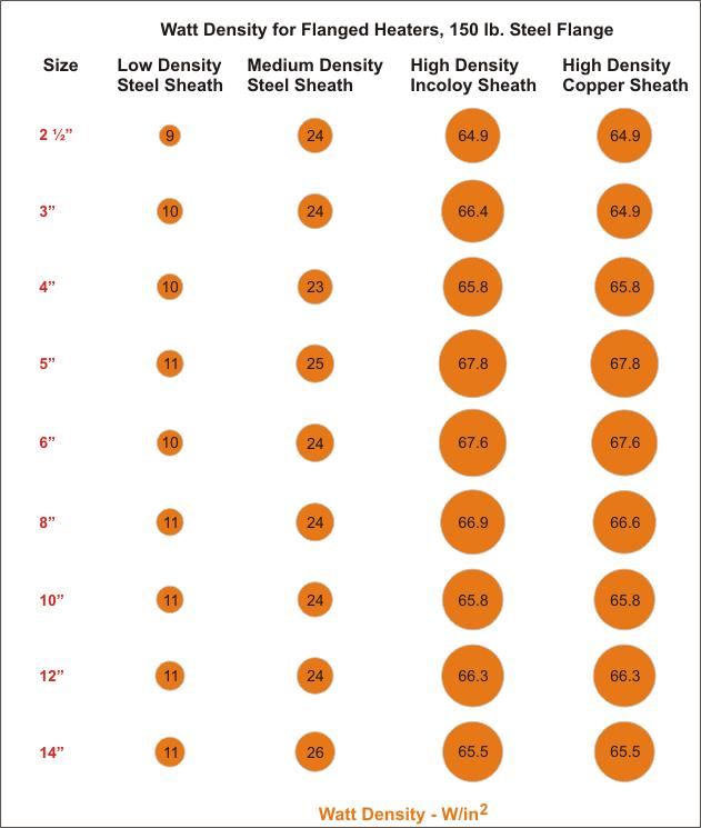 Figure 1: Typical watt density for flanged heaters.